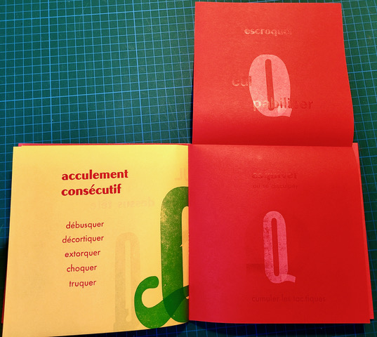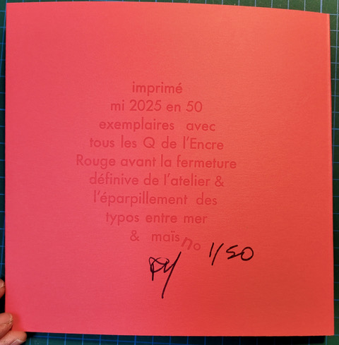 L’atelier collectif marseillais L’Encre Rouge ferme définitivement à l’automne 2025. Avant la séparation (amicale, pour cause de changement de vie et de lieux) et l’éparpillement du matériel entre nous, j’entreprends de faire « un livre de Q ».